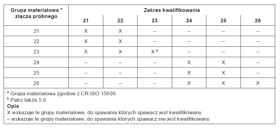 Tablica 2 z normy EN ISO 9606-2 – Zakres kwalifikowania dla materiału podstawowego. [2]